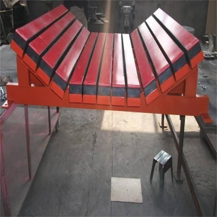 缓冲条采用超高分子聚乙烯板、天然橡胶及高强度铝合金型材一体硫化而成。特种橡胶与缓冲弹簧双重缓冲设计,缓冲性好。装载物料从高处下落时受力均匀,有效防止了物料的飞溅及撒楼,降低了现场工人的劳动强度滑的聚乙烯表面将输送带和缓冲条的摩擦,保护皮带,维修简单,使用寿命长。