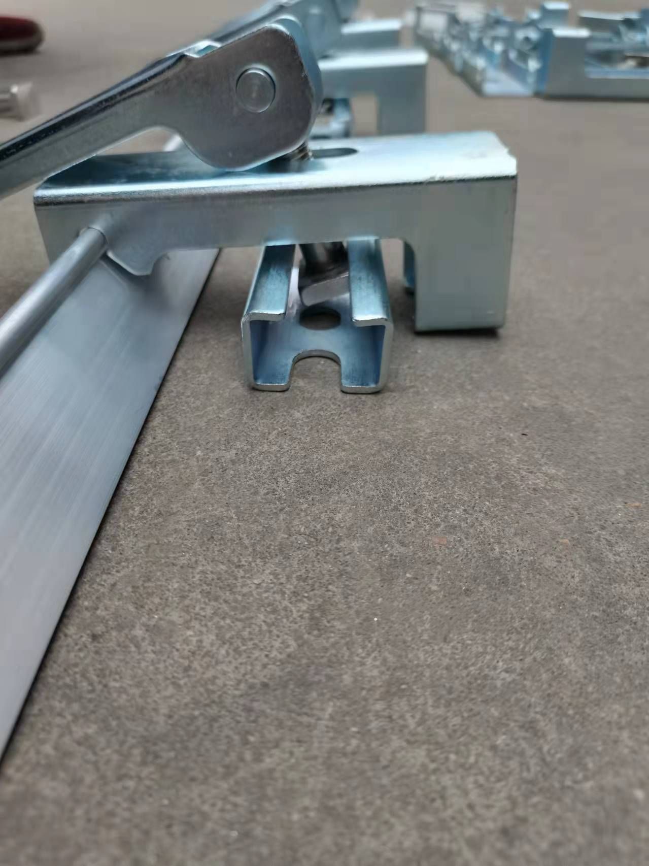 3、手动旋转压紧手柄,适当时向上(下)推到底,可对角铝施加足够的压力,保持裙板位置,且压紧手柄不会松动脱落。
